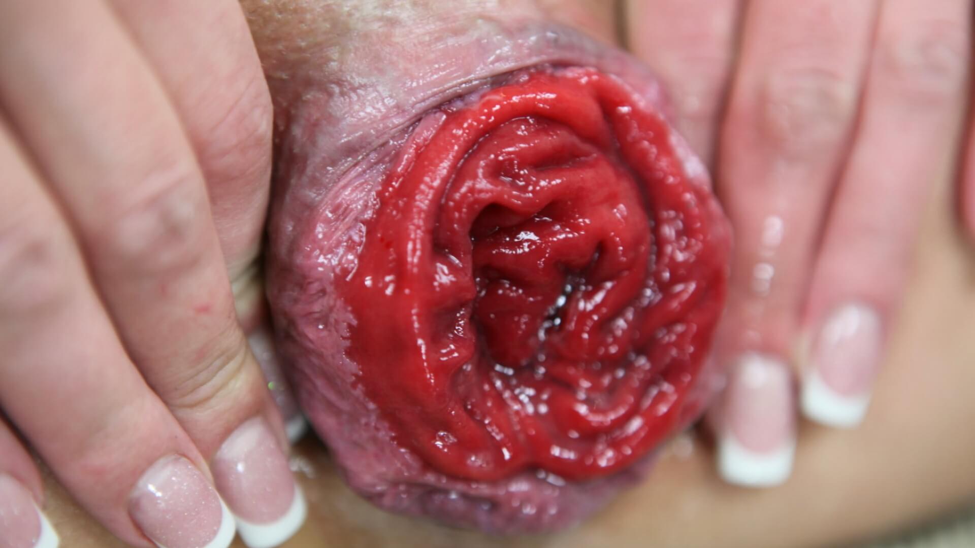 Дикая сучка сняла домашнее видео и показала свое раздолбанное очко, из которого вылезла скрученная красная кишка. Надавливая на жопу пальцами, девушка демонстрирует жесткий пролапс и даже хвастается этим. Крупным планом видно, что творится с аналом телочки, которое давно повидало виды и множество членов.