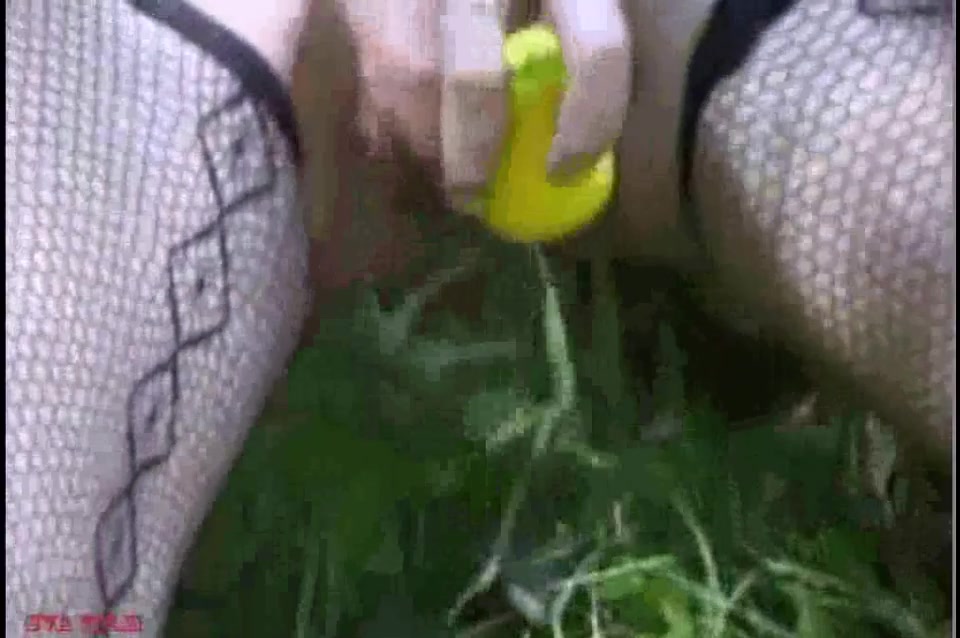 Дефицит мужиков. Русская девка в лесу трахнула себя бананом и обоссалась...