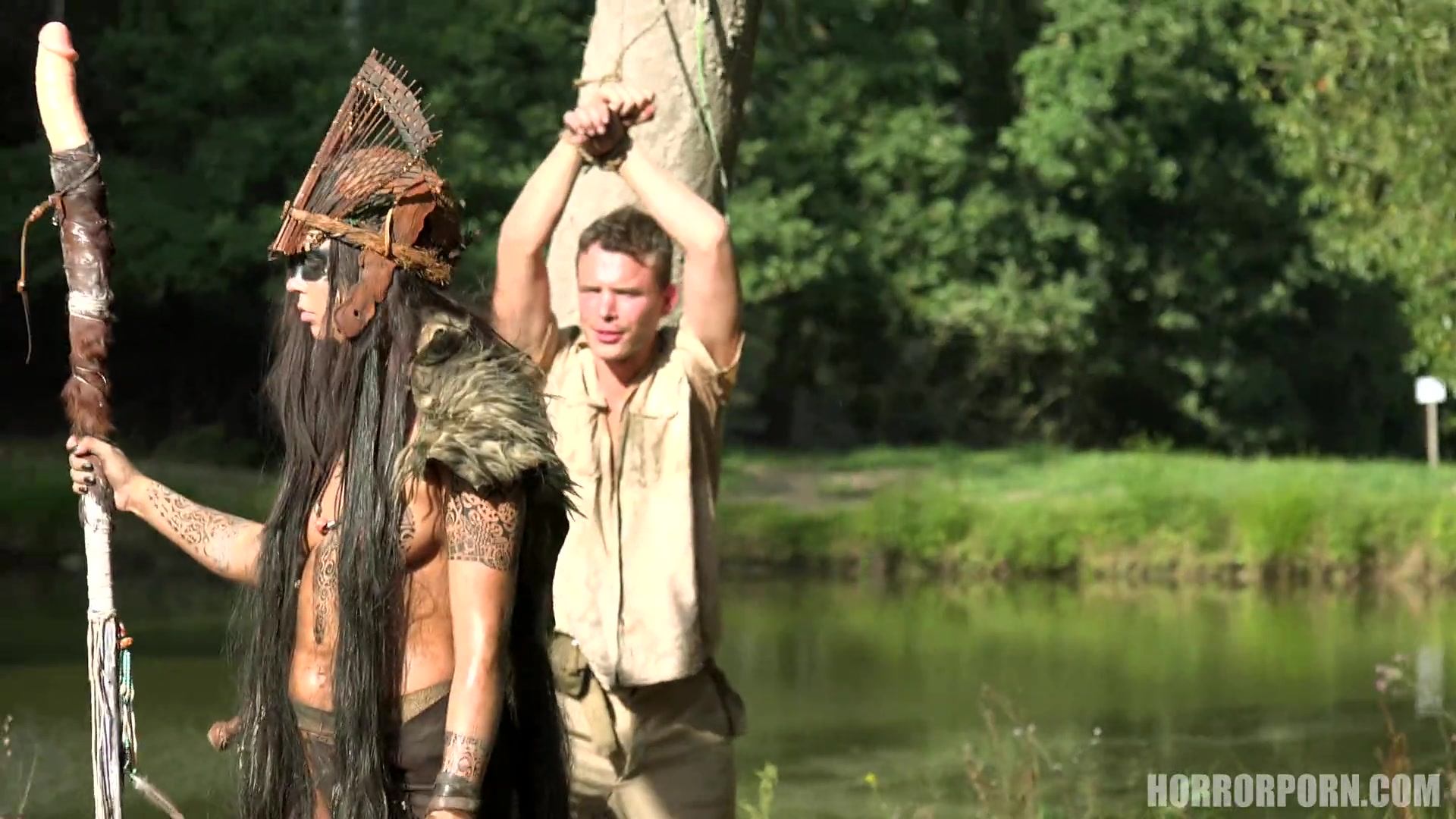 Бродившие по Амазонке туристы попали в плен к местным. Дикое племя обитавшее на этих землях совсем не дружественно относится к гостям. Они схватили их и привязали к деревьям, а сами устроили пиршество по этому случаю и большую групповую секс оргию. Дикари они и в Африке дикари, что тут сказать, не надо было соваться на эти чужие земли. Теперь туристам осталось только глазеть на все это безобразие и молиться, чтобы остаться в живых. Грязные, немытые девушки мастурбируют грязными секс игрушками и немытыми руками, а когда вождь завопил условный сигнал, все подошли к плененным... Порно Ужасы смотрим онлайн на Хуямба!