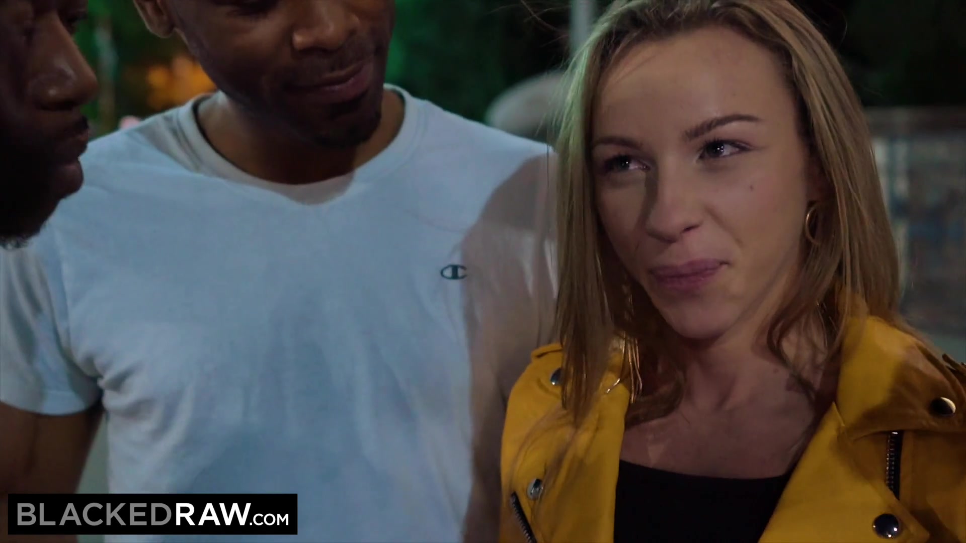 Красотка слегка повздорила со своим парнем и тут ей на пути подвернулся красивый белый лимузин с 4-ма красавцами внутри. Парни прекрасно видео что произошло, воспользовались случаем и пригласили девушку к себе в машину, на что она конечно же любезно согласилась. Дикий групповой секс во все имеющиеся щели одновременно с 4-ма большими толстыми длинными черными членами оставит сладкий отпечаток в памяти худой блондинки на долгие года!