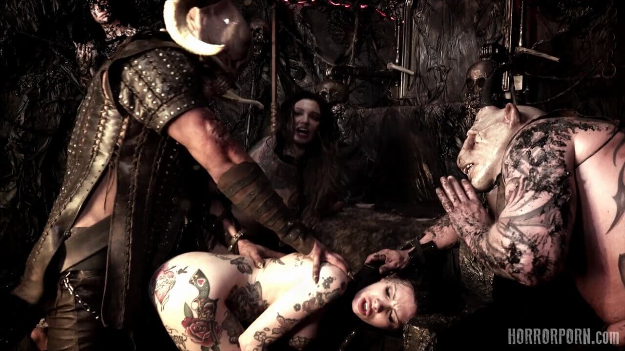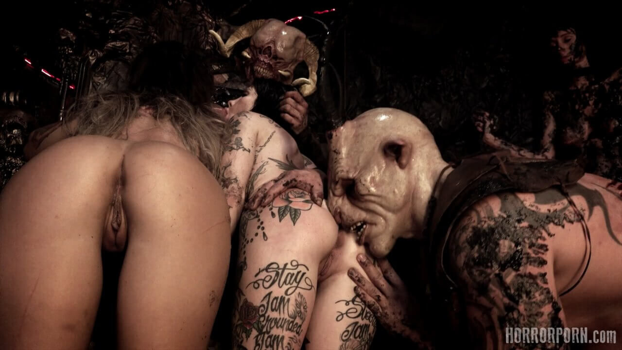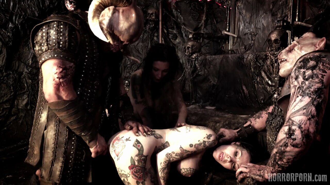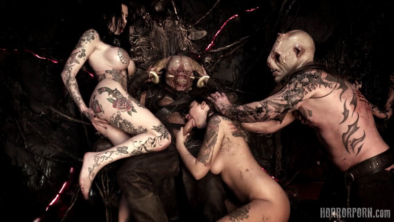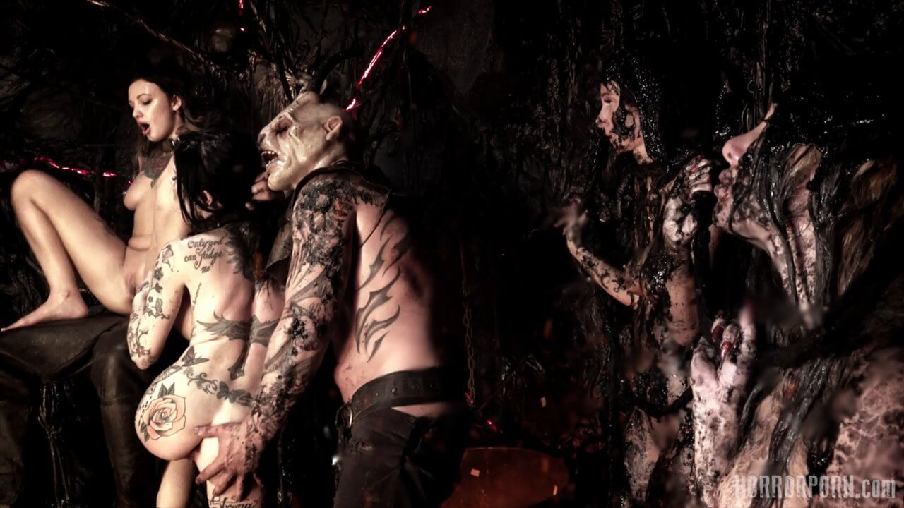 На небе сияет темная звезда, и падший ангел высвободил свой огромный член. Сатана идет! Адские мотыги падают к его ногам, открывая свои анальные дырочки в жертву своему темному Спасителю. Темный Мессия разрушил их анусы и сжег их своей адской горячей спермой. Все готово. Доминируй Сатана! Групповое порно ужасы от чешской студии horrorporn. Этот ролик снимал Sona Martini.